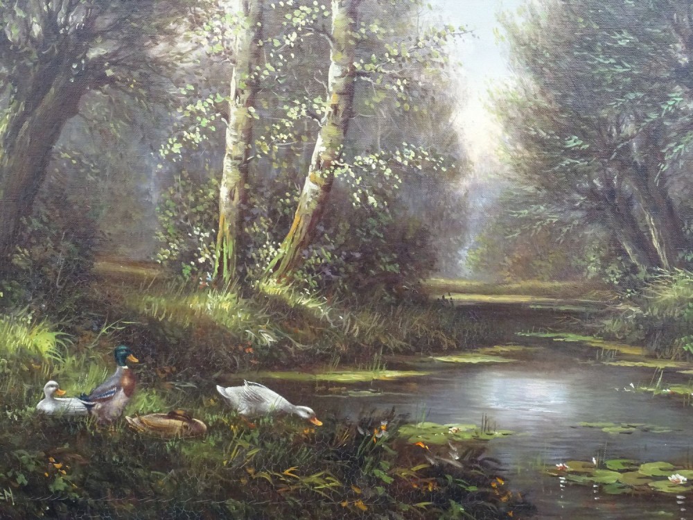 | Onderwerp | Eenden aan de waterkant in bosrijke omgeving. |